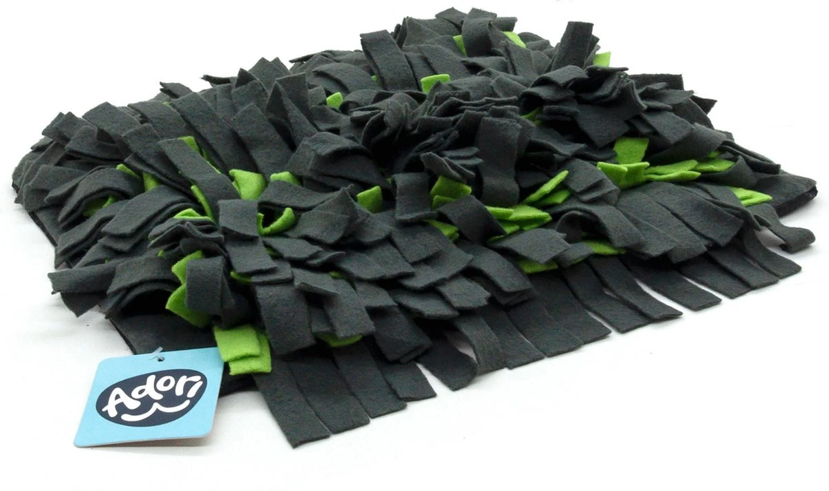 Een uitdagende snuffelmat voor je hond of kat Voer voor je dier kan je natuurlijk aanbieden in een voerbak maar je kan ze ook aan het werk zetten met het Snack- en Speelkleed van Adori. Met deze snuffelmat wordt je hond of kat gestimuleerd om actief op zoek te gaan naar zijn voedsel. Dit speelkleed is vierkant van vorm.