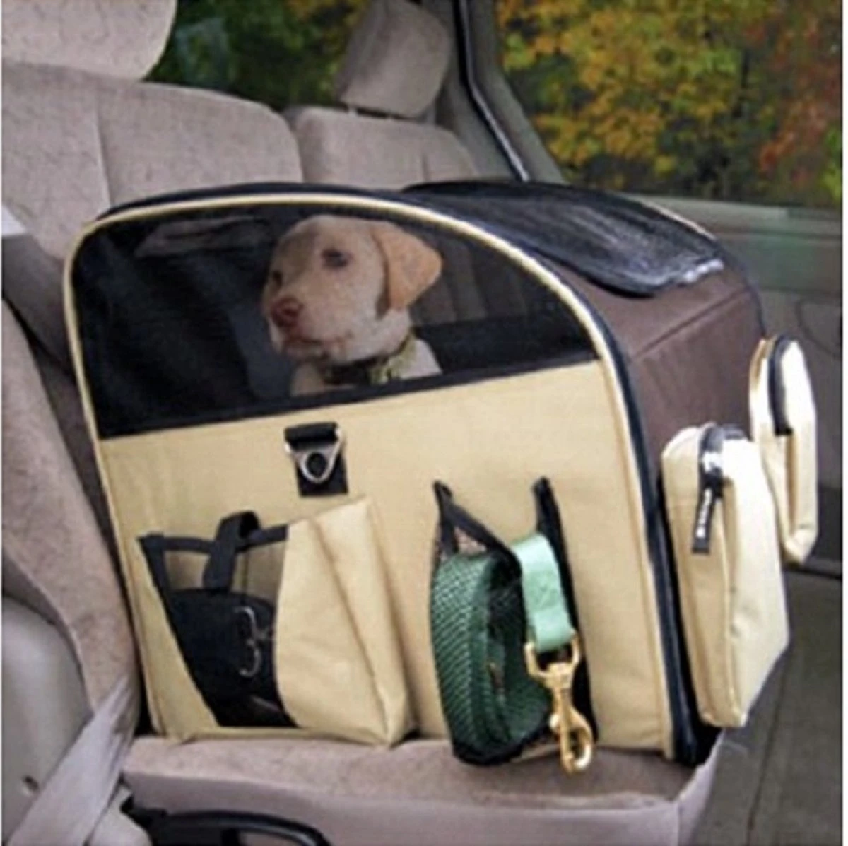 Multifunctionele opbergzakken aan de voorkant en twee zijkanten, om kleine spullen voor de hond op te bergen.