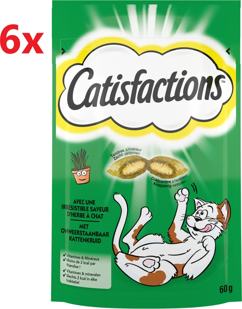 Catisfactions bevatten minder dan 2 Kcal per stuk en kunnen op ieder moment van de dag gegeven worden. Advies is om je kat tot 20 Catisfactions brokjes per dag te geven. Je kat krijgt dan 8,4% van zijn dagelijkse behoefte aan kilocalorieën binnen. Zorg ook dat er altijd vers drinkwater in de buurt is.
