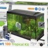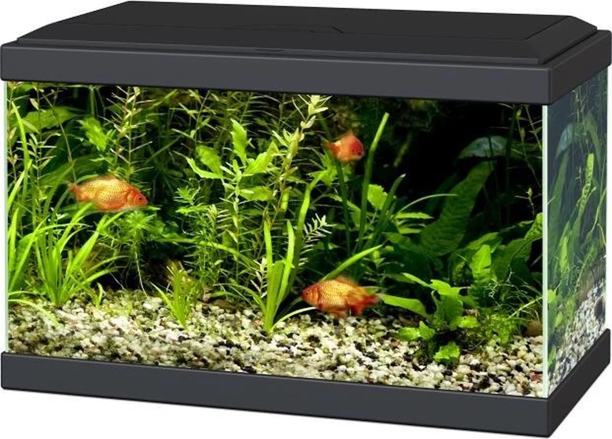 Zorg voor een prachtig display in huis met dit ideale aquarium voor starters. Dit aquarium is gemaakt van 3 mm glas in een stevig plastic zwart frame. In de kap zit een lamp op lage voltage, om veiligheid te garanderen. Het filtersysteem zorgt ervoor dat het water altijd zo lang mogelijk kristalhelder blijft. Het totale gewicht van het aquarium is 3,5 kg.