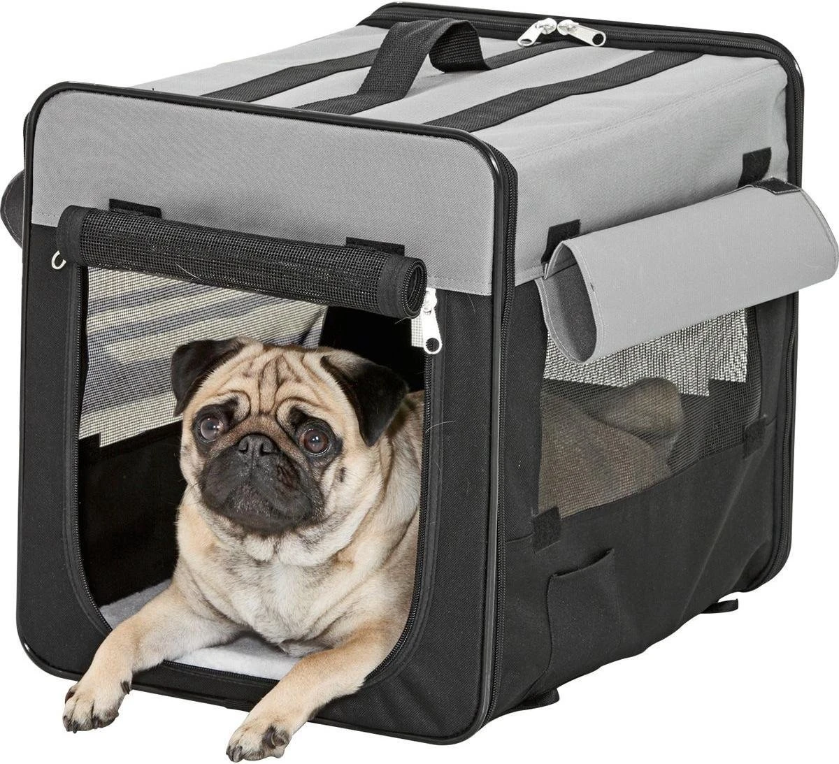 Deze praktische nylon hondenbench in de kleur zwart met grijs is ideaal voor als de hond mee op vakantie of een andere bestemming gaat. De bench is voorzien van ventilatiegaas zodat de luchtdoorstroming goed is en de hond ook naar buiten kan kijken. Is verkrijgbaar in verschillende afmetingen.