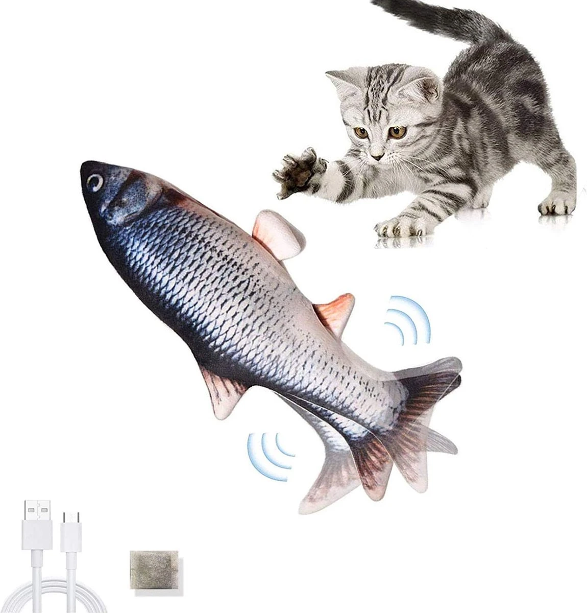 ➤ De staart begint en beweegt als je kat met de vis speelt. Dit bespaart stroom en verlengt de speeltijd van de kat.