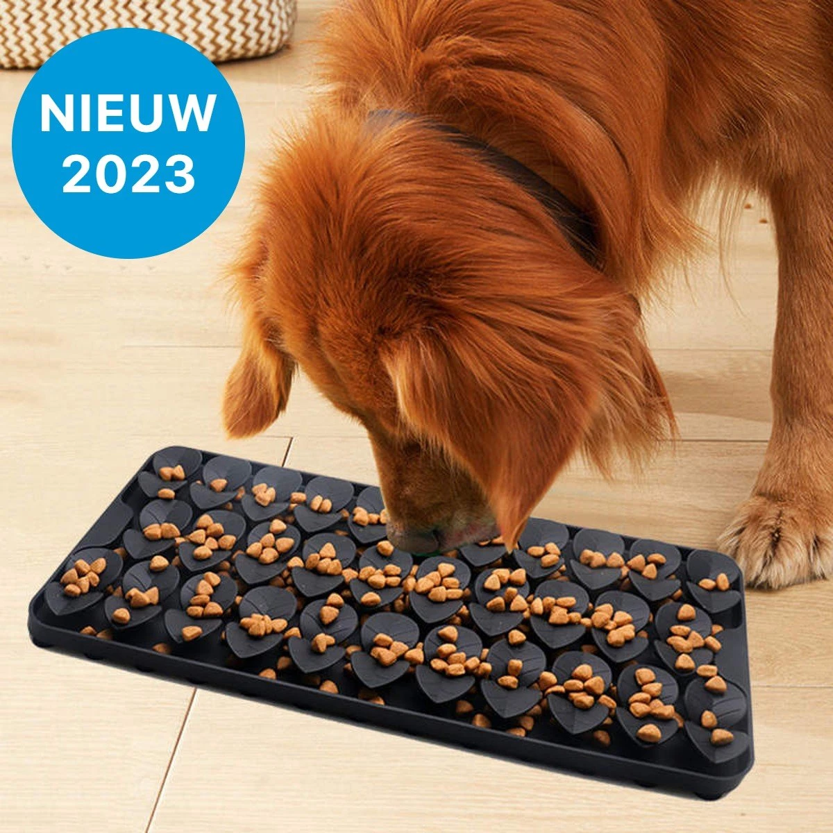 Een snuffelmat is een leuke en uitdagende activiteit voor je hond en kan een geweldige manier zijn om hun mentale en fysieke vaardigheden te verbeteren. Het idee achter een snuffelmat is om de natuurlijke neiging van honden om te snuffelen te stimuleren. De mat daagt je hond uit om zijn neus en intelligentie te gebruiken om de snoepjes te vinden die in de mat zijn verborgen. Dit kan helpen om verveling te voorkomen en tegelijkertijd de mentale en fysieke vaardigheden van de hond te trainen. Verder heeft de snuffelmat ook een kalmerende werking en helpt deze je huisdier om te ontspannen. De snuffelmat is ook een slowfeeder en helpt om schrokken (te snel eten) bij je huisdier tegen te gaan. Behalve leuk honden speelgoed is de mat ook geschikt voor katten.