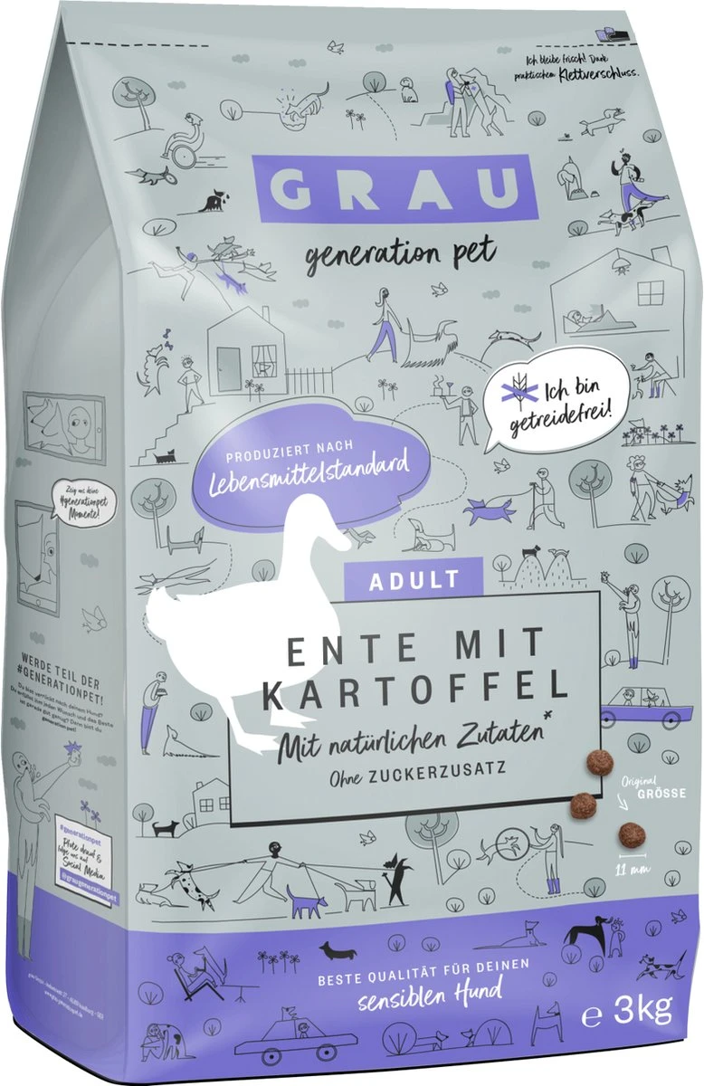 Als enige bron van dierlijke eiwitten is eend een goede keuze voor alle gevoelige hondenbuigen. Het wordt als hypoallergeen beschouwd en wordt gekenmerkt door een hoog gehalte aan eiwitten, magnesium en vitamine B1. De aardappel als graanvrije bron van koolhydraten voorziet je trouwe viervoeter ook van veel bruikbare eiwitten en vezels. Vitaminen, mineralen en vezels uit appels en cichorei als natuurlijke bron van inuline ondersteunen ook de darmflora.