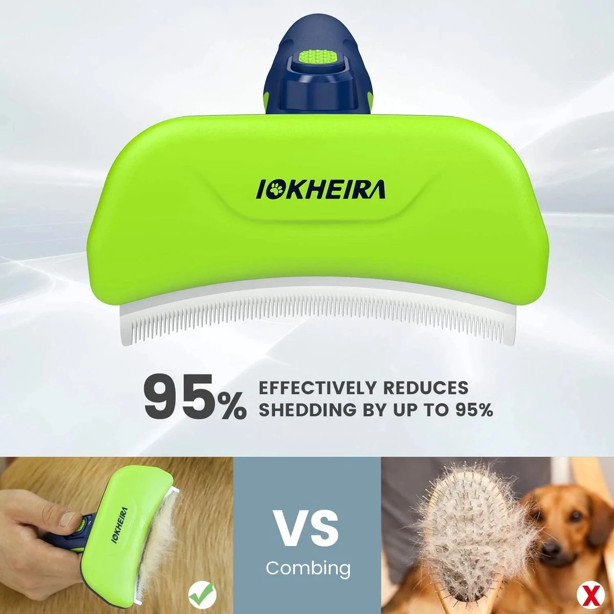 Deze unieke borstel heeft een gebogen rand met gelijkmatig verdeelde lange en korte tanden die zich aanpassen aan de natuurlijke bouw en vorm van uw huisdier. Dit maakt het snel en gemakkelijk om zich te ontdoen van losse vacht, en ook effectief kammen diepere vacht terwijl het stimuleren van de bloedcirculatie in de huid – alles zonder krassen op de huid van uw huisdier.