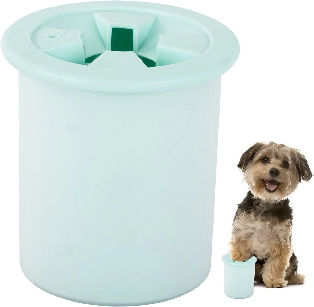 Een eenvoudige koker waar de poot van je huisdier in past. De koker is geschikt voor kleine huisdieren. Vul de koker eenvoudig met water, draai rustig en zachtjes de poot van je huisdier in de koker en droog daarna de poot af. Draai daarna de koker los en gooi het vieze water eruit. Maak de koker schoon voor het volgende gebruik.