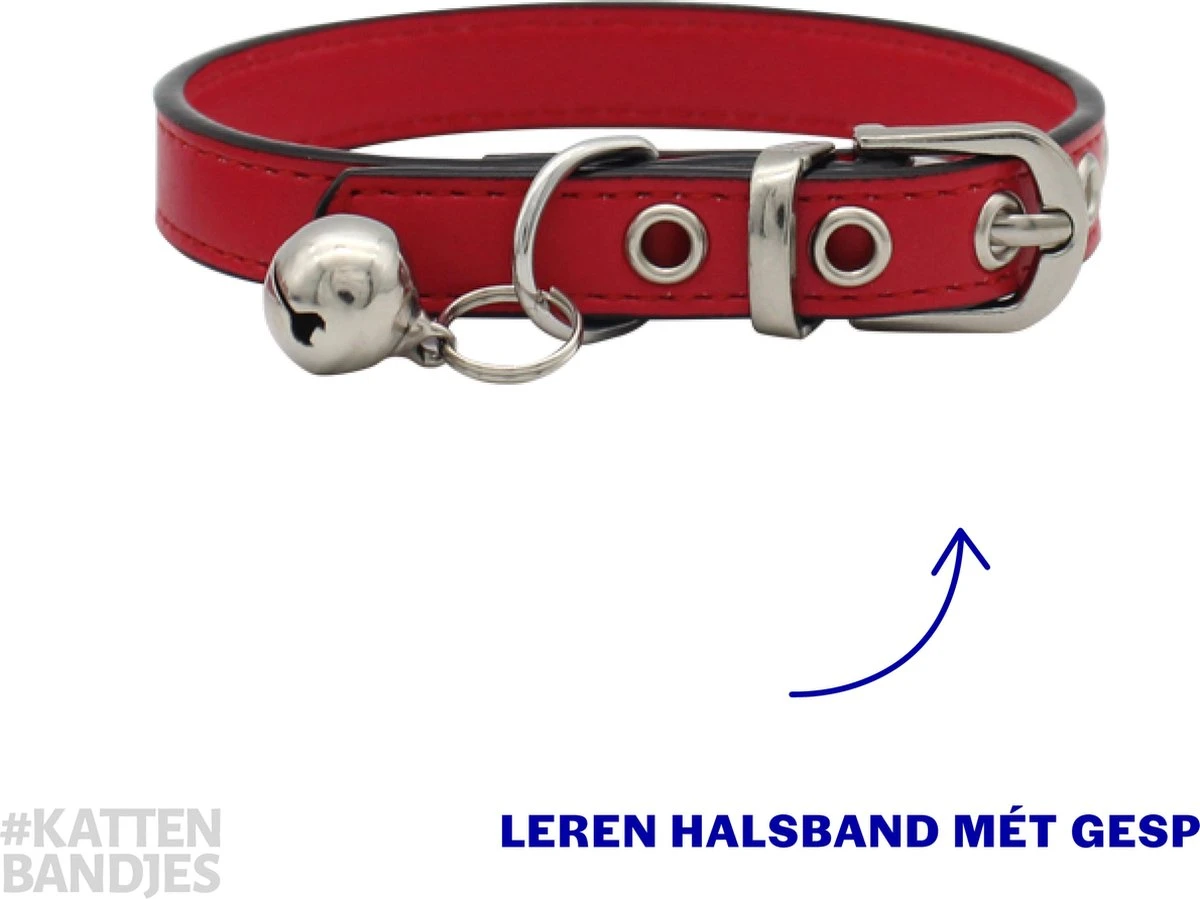 Stijlvolle en stevige leren halsband voor poes, kat of kitten met RVS gespsluiting en belletje: