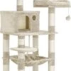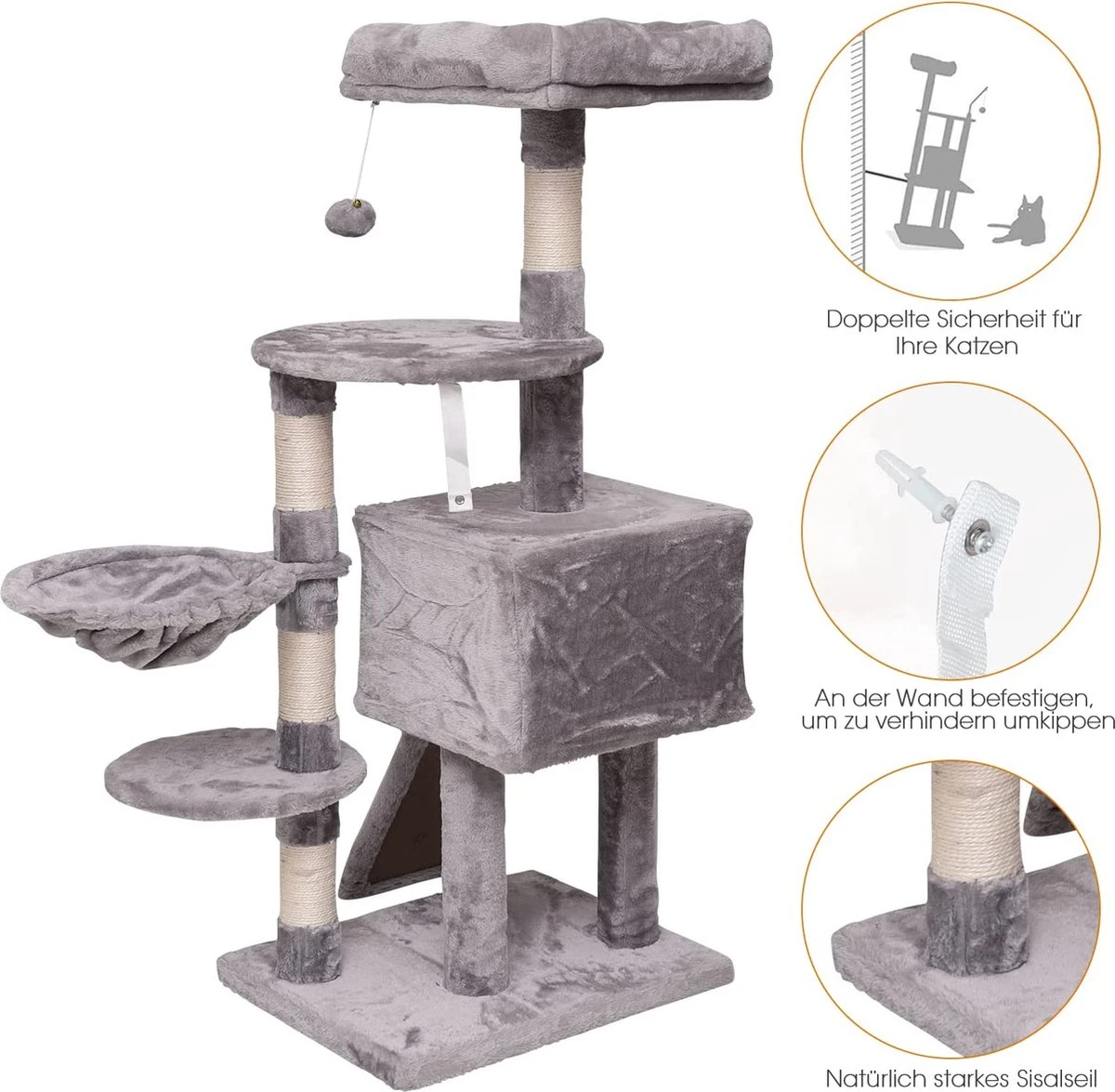 Multifunctionele en compacte zone: de krabpaal met groot zacht pluche venster, appartement en hangmat biedt je kat een grappige en compacte ruimte. (Totale afmetingen 49 x 39 x 120 cm) is het droomparadies van elke kat.