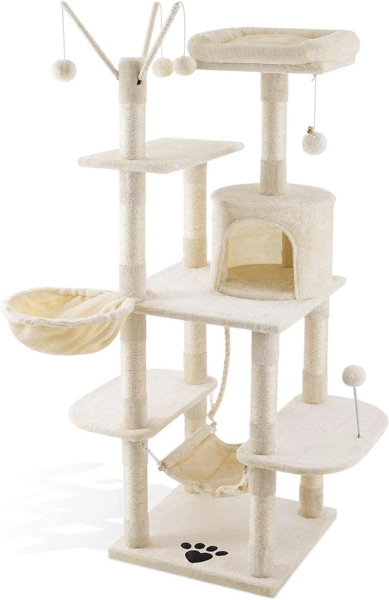 Robust cat tree with durable sisal for claw care, sisal rods of approx. 7-8 cm (diameter).