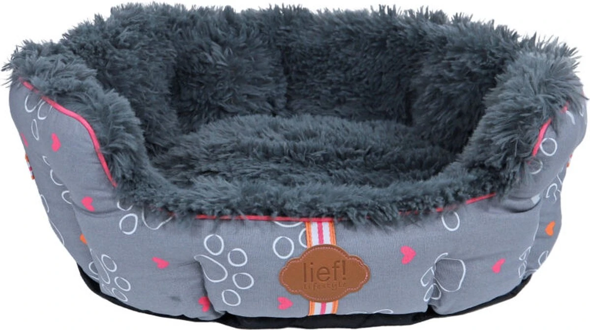 lief! Girls mand is een leuke huisdierenmand met een lekkere zachte binnenkant van antraciet pluche. De buitenkant van de slaapmand is gemaakt van grijze stof met een pootjes print en Girls details. Hier zal uw huisdier heerlijk in kunnen slapen! Let op: dit mandje heeft geen uitneembaar los binnenkussen. Verkrijgbaar in verschillende maten.