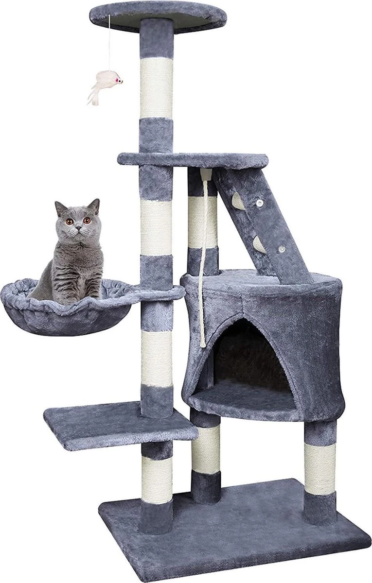 MC Star Krabpaal Klimtoren 120cm Stabiele schraper met nesten, Hangmat, Platforms, Kattenspeelgoed, Krabpaal Natuurlijke Sisal – Grijs, 120cm