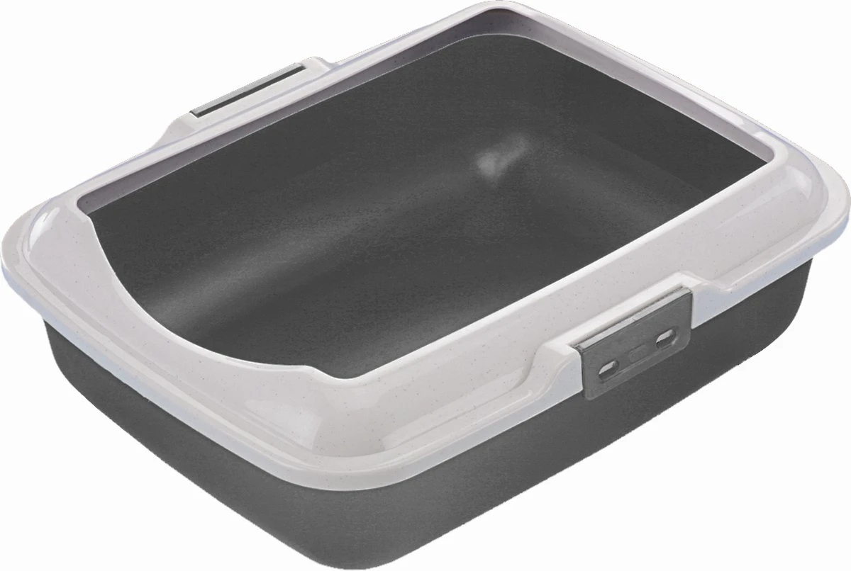 Een open kattenbak. Katten houden ervan om hun omgeving nauwlettend in de gaten te houden, zelfs als ze hun zaken doen om onmiddellijk te vluchten, indien nodig.