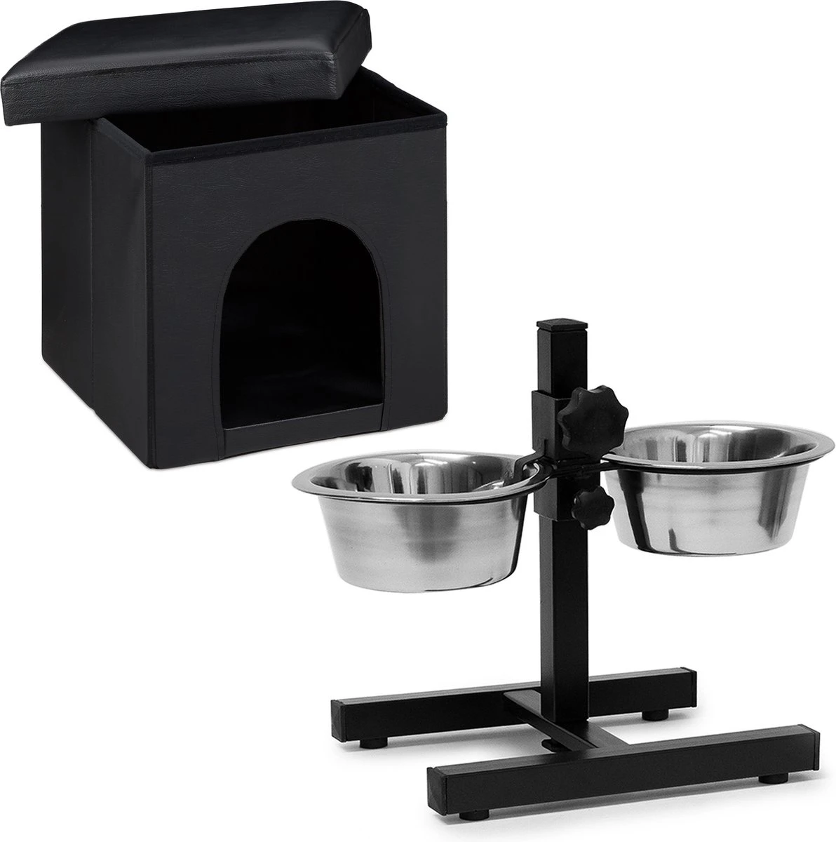 Voor een maaltijd tussendoor zorgt de dinerset van roestvrij staal. Hiermee kan je het favoriete voer en water tegelijkertijd serveren. De twee voerbakken staan op een standaard met rubberen pootjes. Hierdoor staat de dinerset stabiel en hoef je je geen zorgen te maken als je hond wat wilder is.