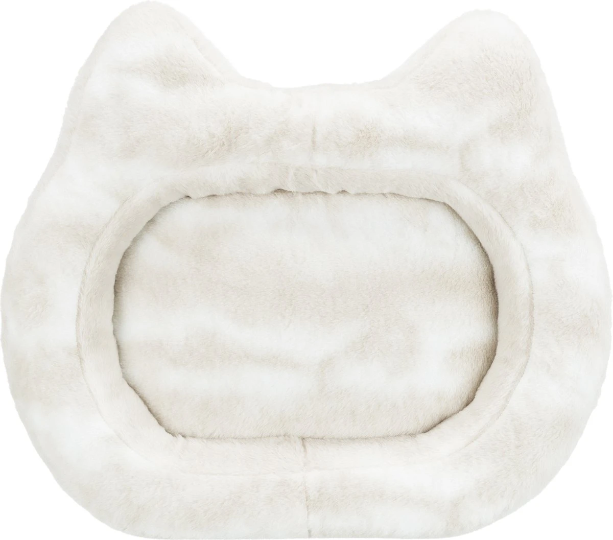 De Trixie Kattenmand Nelli Kattenkop Wit / Taupe van 58 x 53 cm cm is een schattige kattenmand in de vorm van een katkopje, gemaakt van pluche met geïntegreerd kussen en slipvaste onderkant.