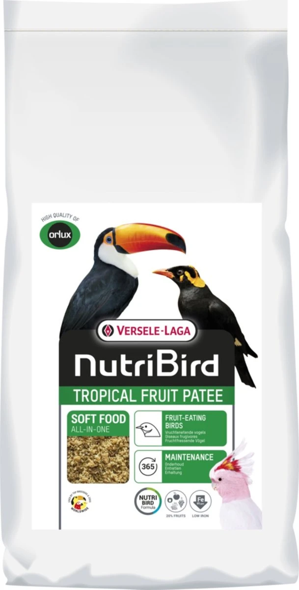 Volledig voeder voor alle vruchtenetende vogels Uitgebalanceerde vruchtenpatée met alle voedingsstoffen die jouw vogels nodig hebben.