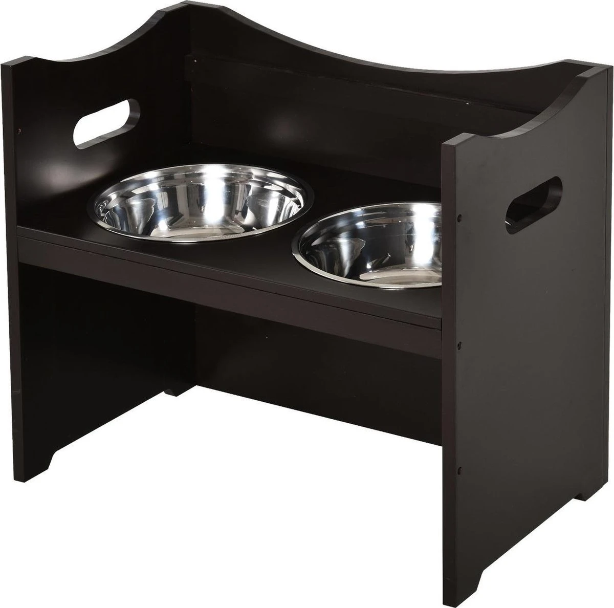 Deze gebruiksvriendelijke voerbak voor je hond is gemaakt van massief en natuurlijk MDF-materiaal van kwaliteitsklasse P2, evenals roestvrij staal. De kom is uitneembaar, je kunt het eten/water gemakkelijk vullen en de kommen gemakkelijk schoonmaken. De hoogte van het frame is in 3 stappen te verstellen zodat de voerbak je hond van puppy tot op hoge leeftijd kan begeleiden. Daarnaast kan de standaard worden uitgerust met een verhoogd ontwerp, waardoor de belasting van de nek, rug en gewrichten van de hond wordt verminderd. Daarnaast is deze voerbak gemaakt van donkerbruine houten panelen, je kunt het combineren met je andere meubels.