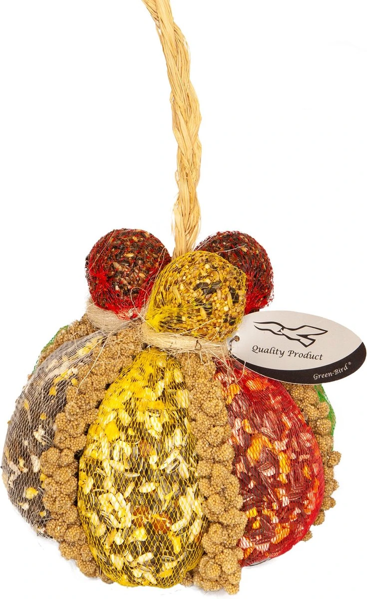 Deze mooie en luxe voeder bol kunt u in de boom of aan de schutting hangen en u zult zien dat de vogels in uw tuin terug keren om deze lekkernij te proberen. Gewicht 1.5 kg. Afmetingen 30 × 30 × 30 cm.