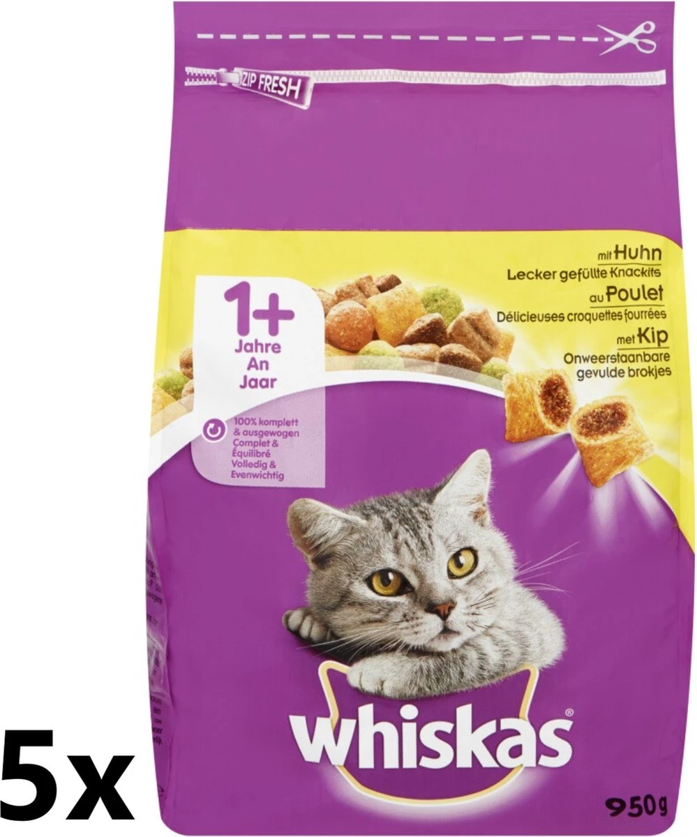 Whiskas 1+ droge brokjes is volledige en gebalanceerde voeding met een optimale balans van vitaminen en mineralen, om te helpen de best mogelijke verzorging te geven aan jouw volwassen kat.